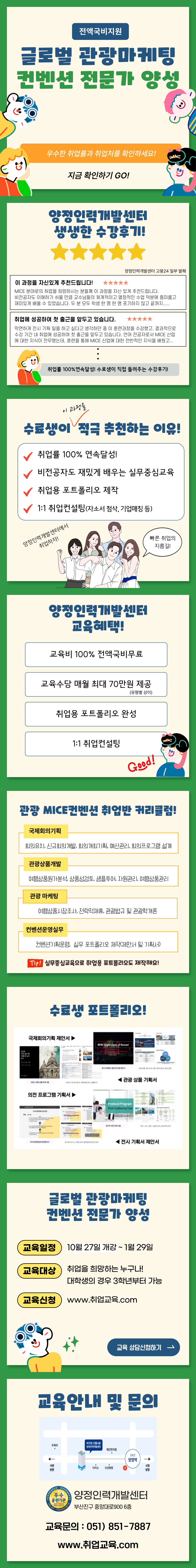 이제는, 관광·MICE컨벤션 전문가로 양정인력개발센터에서 시작하세요!