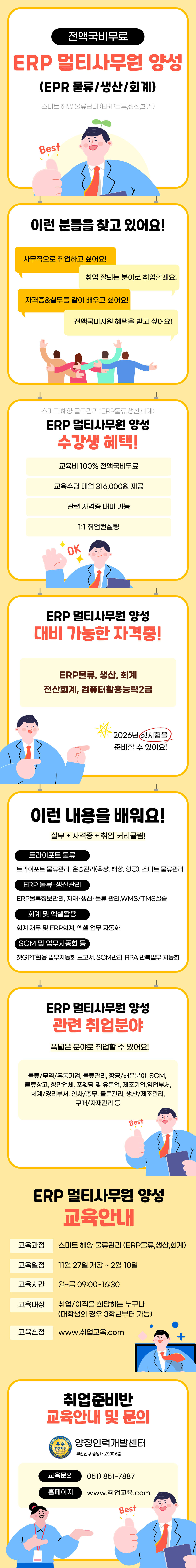 - 과정명 : 스마트 해양 물류관리(ERP멀티사무원 양성)