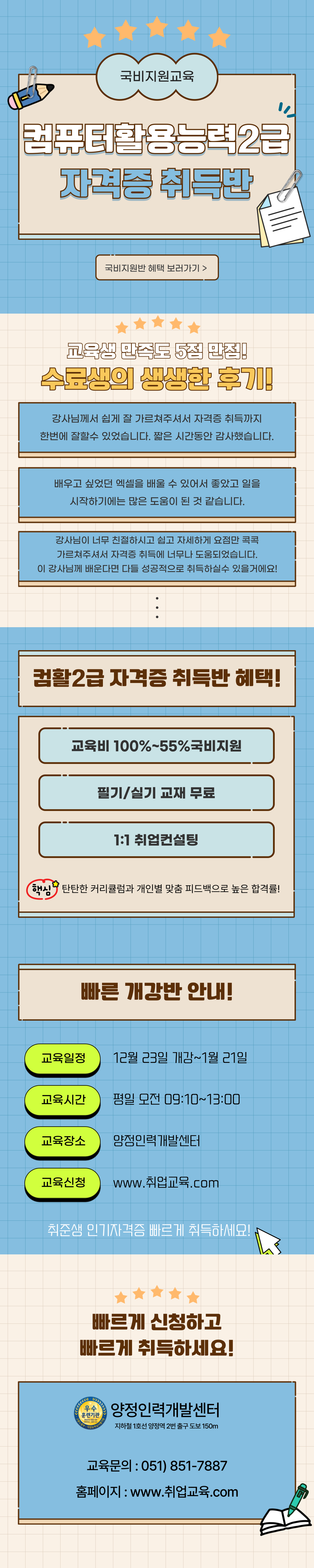 <컴퓨터활용능력 2급 취득 준비반(필기/실기)>