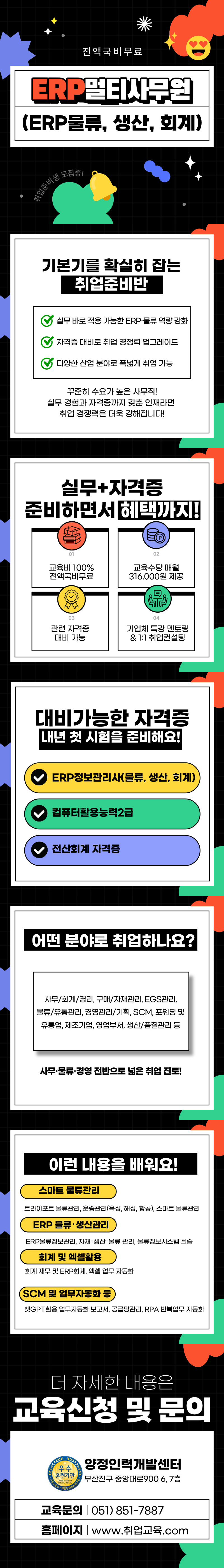 전액국비무료 물류・ERP・사무직분야 취업준비반